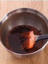 巧克力和黄油隔热水融化(水温不宜太高),倒入3的面糊中