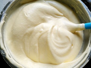 将三分之一蛋白霜加入蛋黄糊中搅拌均匀
