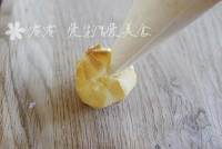 奶油装入裱花袋,袋口剪个小口子,在泡芙的开口处,(如果没有开口就在最薄的地方戳进去)把奶油挤进去。