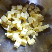 黄油软化后切小块放入干净的深盆儿里(打蛋盆即可)