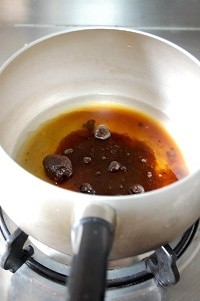 待熬成略粘稠的糖浆时,加入糖桂花拌匀成桂花糖浆盛出备用。