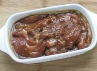 用蒜蓉、南乳、南乳汁、料酒、蚝油和白糖腌制30分钟备用