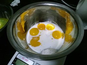 倒入剩于蛋白中拌匀,确保无颗粒。