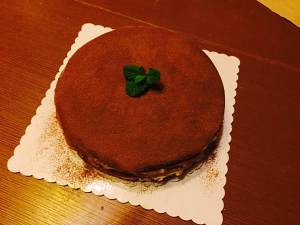 第二天取出来,在表面撒上可可粉,放上喜欢的装饰就可以啦。