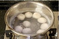 煮一锅水,沸腾时下入汤圆,煮至再次沸腾时转中火,加入少量冷水,再次沸腾后再加水,反复三至五次,至汤圆完全浮起时关火