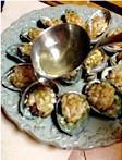 挨只将热油淋到鲍鱼上。摆盘上桌