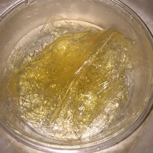吉利丁液加入芒果芝士糊,翻拌均匀,天冷可以隔水搅拌