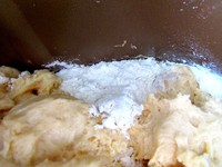取出中种面团,面包机里放入淡奶油。