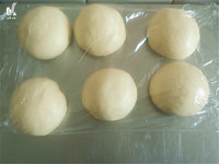 揉好的面团直接分割成六等分,滚圆后盖保鲜膜松弛20分