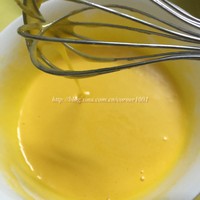 将材料A混合,用手动打蛋器,打发至蛋黄的颜色比之前的较为白点。这是相对而言。