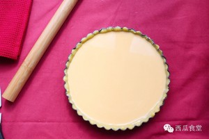 用叉子在饼皮底部扎一些小洞,防止派皮受热膨胀鼓起。