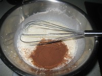 搅拌均匀后加入糖粉,淡奶油用打蛋器稍为打至不流动状态即可,不用打发起来;
