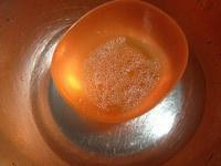 将用于酸奶馅的吉利丁片5g放入35g清水泡软,并隔热水化开。