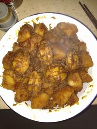 Tip:土豆炖15分钟基本上就快熟了,此时放入鲍鱼,加入精盐(根据自己口味适量,之前已经加过老抽生抽,不喜欢吃咸的就要注意精盐的量)大火8分钟,注意不要炖糊了,炖到6、7分钟的时候也可以翻炒一下,加鸡精,满了8分钟就关火出锅