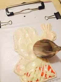 好,勾线完毕,让巧克力晾至半干,巧克力线细,很快就可以啦