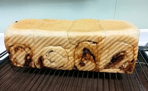 土司发酵到八分满。进烤箱,190度40分钟。出炉立即脱模,晾架上完全冷却后再切。 烤的时候那个香气四溢啊~ 红糖经过高温烘烤,开始爆浆。等冷却吃好好吃。