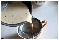 加入水牛奶,继续小火加热
