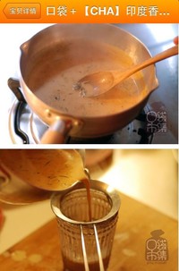 Tip:masala茶是印度的传统香料奶茶。是以阿萨姆红茶ctc配比桂皮,黑胡椒,小丁香,青豆蔻,姜等香料。味道香浓。一年四季都可以煮来喝。冬天加热夏天加冰!无耻地加小广告啊。。。tb里搜店铺 口袋市集 可以买到。。。