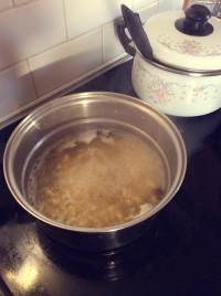 加入些凉开水,(尽量别将滚烫的水直接放入料理杯中)然后放入厨房料理机的杯里。