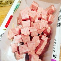 火腿也切成小方块~要切得比豆腐块小一点噢