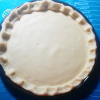 把饼皮放披萨盘里,并且把边角往里捏起来成褶皱状