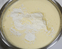 把面糊倒入铺好活底模中,震出面糊里的气泡
