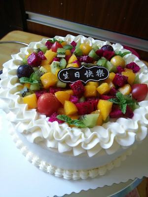 好了,水果蛋糕就完成了。