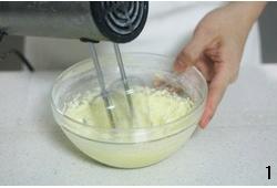 黄油软化后,加入细糖粉,用打蛋器搅打至体积蓬松。