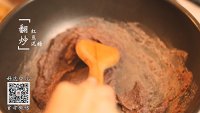 红豆浆加适量的糖放入锅中炒制,变粘稠即可;
