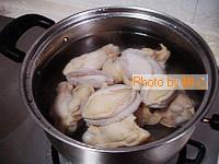 将鲍鱼择洗干净,将鸡根洗净,飞水,再次洗净,重新放入煮锅中,一次性注入适量的清水,放入洗净的鲍鱼,盖锅盖,大火煮滚。