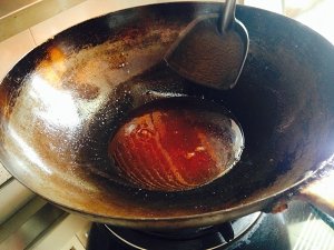 直到糖炒出有拔丝的感觉,这时加入番茄酱。