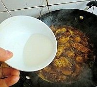 鱼块烧制20分钟后,大火收汁,淋入适量的水淀粉勾芡。
