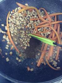 放锅里翻炒,我不放盐,用酱油,稍微一点点咸就可以了,看自己口味可以适量添加蚝油,料酒,十三香什么的都可以,我现在在国外没弄到十三香所以没放,把肉炒熟了,把胡萝卜炒软一点,让他们出汁,(胡萝卜和肉一起炒会营养价值提高好几倍)炒完把细长的胡萝卜捞出来备用这时候尝几年的肉丁也特别好吃