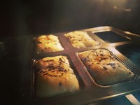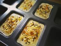模具涂油防粘 每个模具倒至七分满 切勿过满 因为还要在每个蛋糕表面磕入鸡蛋噢~