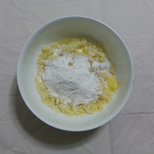 马铃薯泥+黄油+低筋面粉拌均匀。