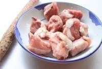 锅里放入少许底油,爆香蒜粒,姜片,放入排骨同炒一会