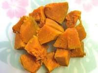 南瓜去皮切稍大块,加点水包保鲜膜微波炉叮8分钟至软,取小锅烧水,水烧开后下意面。