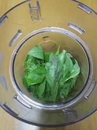 加入橄榄油,芝士块,松子(家里松子用完了,这次用核桃仁代替),一点点黑胡椒粉 开料理机搅拌成泥就好啦