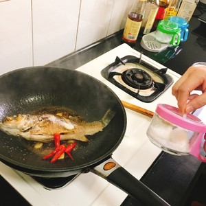 两面都炸酥后可自由翻动鱼身~欠火候的地方可补炸~