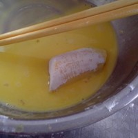 再均匀的裹上淀粉鸡蛋液