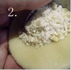 先沿着圆面皮的两侧对捏起来,以免馅漏出