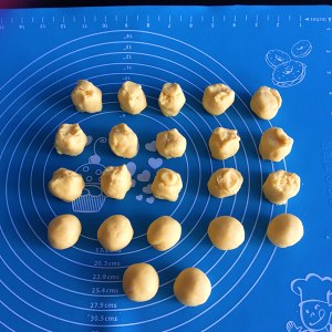 和好的面团揪成小剂子,每个20克搓圆(大小也可自己随意)
