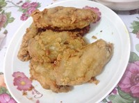 抹去鸡翅上的蒜椒末,放入面粉中,裹一层面粉后用手捏紧后迅速拿出放一边。