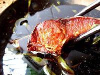 炸到金黄色即可。这时候开大火拉高油温,一方面助于逼出鱼块里的油,另一方面升高鱼块温度,可以吸收更多的卤汁。