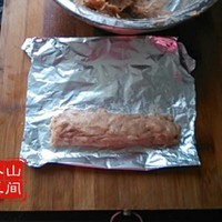 Tip:丨、肉馅一定要泥状的,火腿肠的粗细依个人喜好来卷,锡纸一定要包两层,卷的紧实一点。2、若想让火腿肠颜色好看,可以加少许的红曲粉染色,但我没加。