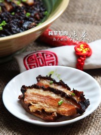 移走原来蒸肉的碗,一盘梅菜扣肉就完成了;