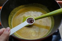 Tip:咖喱粉一定要先炒过,才能激发出更多的香味。材料中的蜂蜜和椰浆都是减少咖喱刺激口感,同时使咖喱味提升。加入牛奶而不是水,使得咖喱浆更加柔滑浓郁。 最后在咖喱中加入巧克力,将可可的香味容易咖喱,同时又有微微不易察觉的苦 使得咖喱更加浓郁而好吃~~~~~