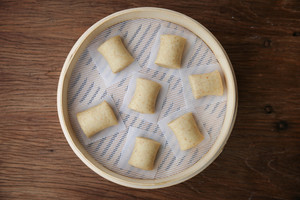 蒸笼铺上硅胶垫,排入馒头胚子,记得每个馒头之间需留有足够空隙