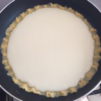 上一步骤中的起司混合物倒入平底锅中的饼底内。