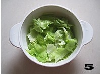 将生菜叶和莴笋片放入大碗中备用